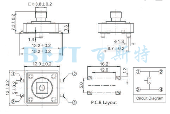 (2)輕觸開關(guān)TS-1103