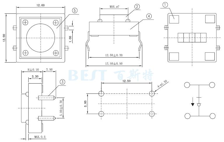 以上就是關(guān)于輕觸開關(guān)12×12的常見幾款產(chǎn)品的相關(guān)介紹,大家如果有不明白的地方,歡迎致電咨詢。其次,建議大家給輕觸開關(guān)12×12端子進行焊接時,不要在端子上施加負荷,以免因條件不同會有松動,變形及電特性劣化的可能。輕觸開關(guān)12×12對于平軸桿型,盡量按下開關(guān)中心部。對于鉸鏈結(jié)構(gòu),按下時軸桿按動位置將移動,請?zhí)貏e注意。如果使用開關(guān)的整機的周圍材料產(chǎn)生腐蝕性氣體,將有可能造成接觸不良等現(xiàn)象,所以請事先進行充分的確認。