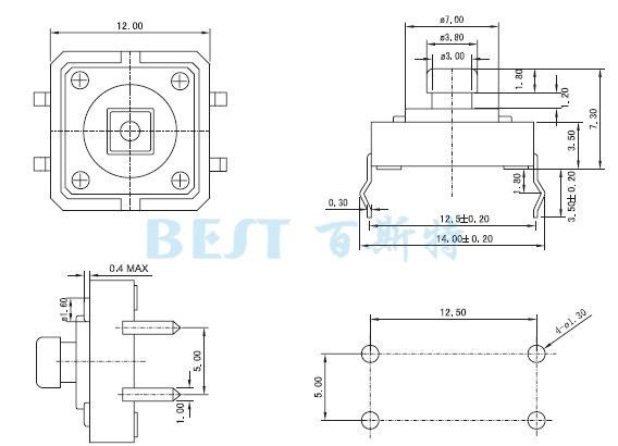輕觸開關(guān)TS-1103參考圖紙: